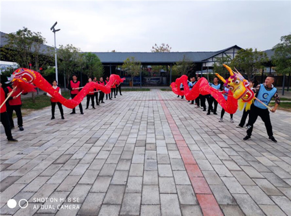 ͼ/ ¡°¹Ä¸ÐÈËÐÄ¡±Ô˶¯ÏÖ³¡ ×îºóÒ»¸öÏîÄ¿ÊÇ¡°ÁúÌÚÊ¢ÊÀ¡±¡£ËùÓÐÈËͬÐÄÐÁ¦½«Áã¼þ×é×°³ÉÒ»Ìõ»îÎÞаÏÖµÄÁú£¬²¢ÔÚ½ÌÁ·µÄÖ¸µ¼ÏÂÍê³ÉÁúÌÚËĺ£¡¢ÅÌÁúÔÆº£¼°ÓÎÁúÏ·Ë®Èý¸öÐж¯¡£ÕâÊÇÒ»¸ö´óÐÍ´´×÷ÀàÏîÄ¿£¬Òâ¼ûÒâÒåÐÔºÍÍŶÓÏàÖúÐÔ¼«Ç¿¡£¸÷È˸÷˾ÆäÖ°£¬ÖÆ×÷Áú¹Ç¡¢»ÁúÁÛ¡¢Õ³ÁúÍ·Áú⣬²»µ½Ò»¿ÌÖÓµÄʱ¼ä£¬Á½ÌõÓÎÁú¾ÍÖÆ×÷Íê³É¡£ÔÚÎèÁú»·½Ú£¬¸÷ÈËרÐÄÌý¡¢×¨ÐÄÎ裬Á½¶ÓµÄÎèÁúÐж¯¶¼»ñµÃÁ˽ÌÁ·µÄ¸ß¶ÈÔÞÑï¡£×îºó£¬ÔÚ½ÌÁ·¡°·çˮԽÀ´Ô½Ë³¡¢ÉúÑÄÔ½À´Ô½ºÃ¡±µÄ×£¸£Öп¢ÊÂÁËÓä¿ì¶ø³ä·ÖµÄÍŽ¨ÍØÕ¹Ô˶¯¡£